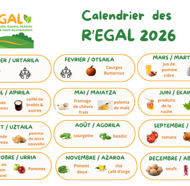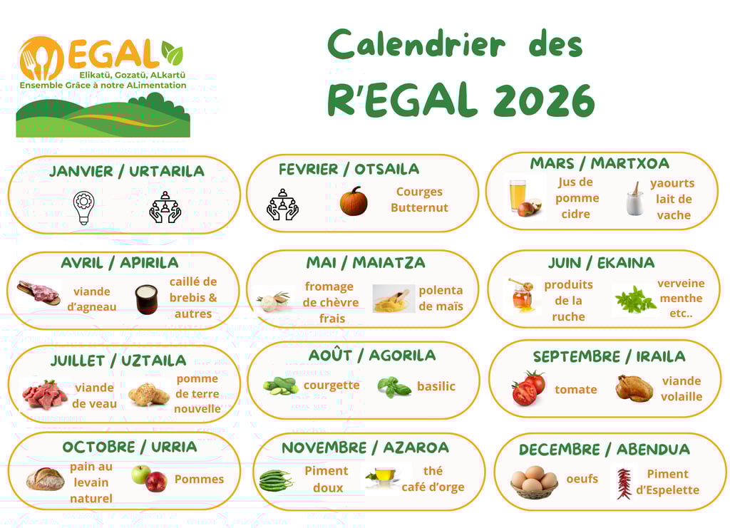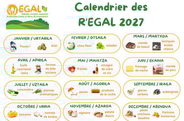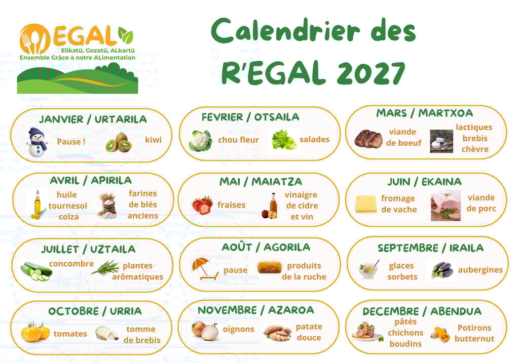 EGAL met en place un calendrier annuel sur la base de deux aliments produits localement chaque mois, en tenant compte de la saisonnalité et des disponibilités.